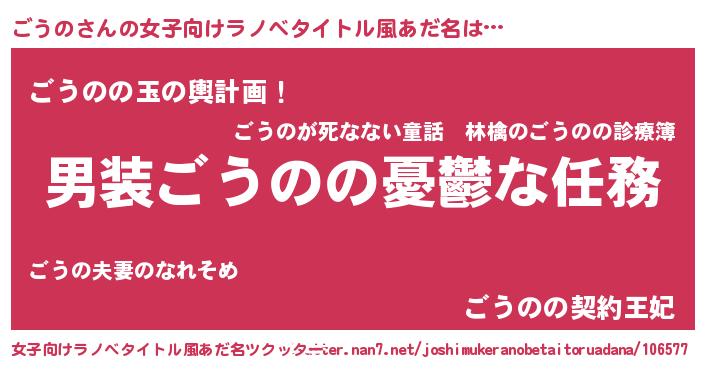 | 胡散臭い通販商品みたいなあだ名 | 『来世でも幸せになれる水素水…その名も「ごうの」』 |