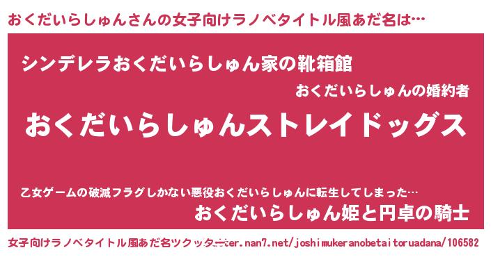 | 男性向けラノベタイトル風あだ名 | 『Re:おくだいらしゅんから始める異世界生活』 |
