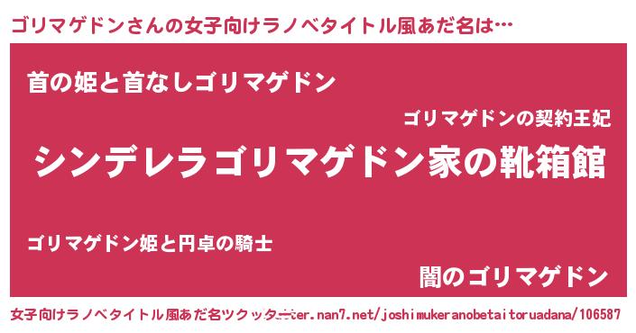| 意味不明あだ名 | 『自称ゴリマゲドン』 |