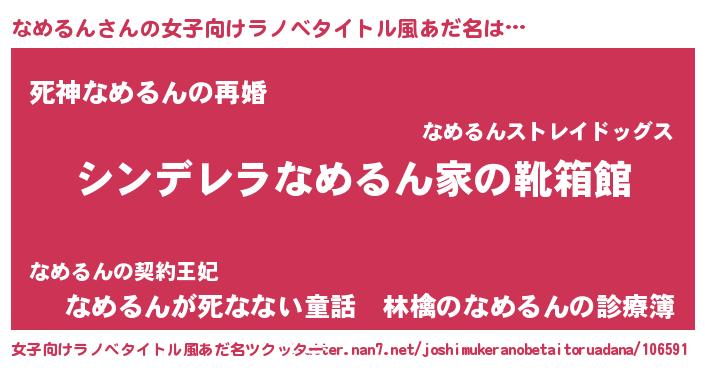 | 男性向けラノベタイトル風あだ名 | 『緋弾のナメルン』『魔弾の王となめるん』 |