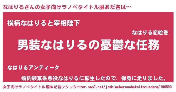 | 男性向けラノベタイトル風あだ名 | 『うちのなはりるが世界を掌握している!』 |