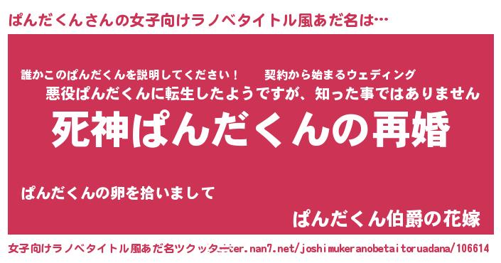 | 男性向けラノベタイトル風あだ名 | 『ノーゲーム・ノーパンダクン』 |