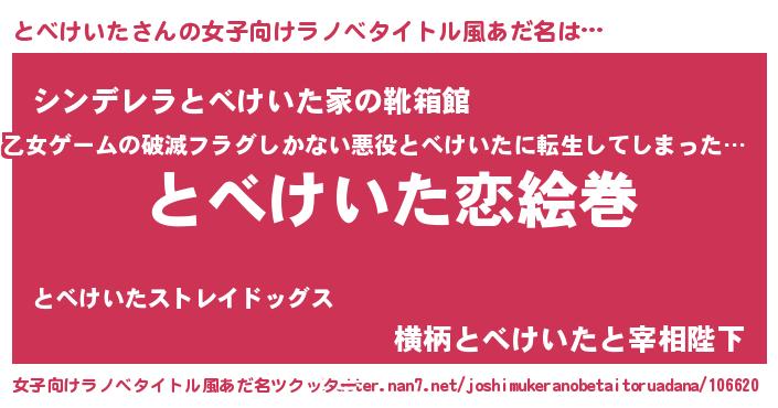| 胡散臭い通販商品みたいなあだ名 | 『お金では代えられないマグネット磁石…その名も「とべけいた」』 |