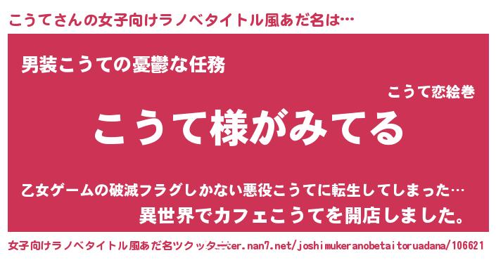 | 意味不明あだ名 | 『とにかく怪しいこうて』『自称こうて』 |