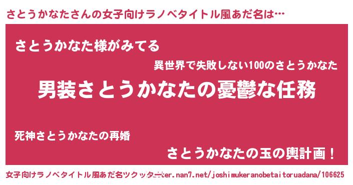 | 男性向けラノベタイトル風あだ名 | 『うちのさとうかなたが世界を掌握している!』 |