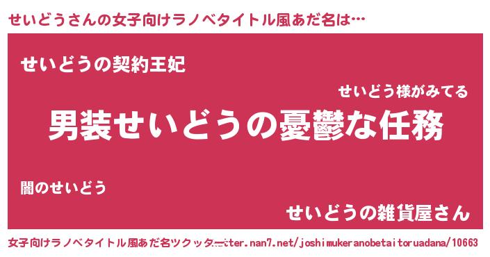 | 意味不明あだ名 | 『永久保存せいどう』『自称せいどう』 |