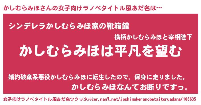 | 意味不明あだ名 | 『とにかく怪しいかしむらみほ』 |
