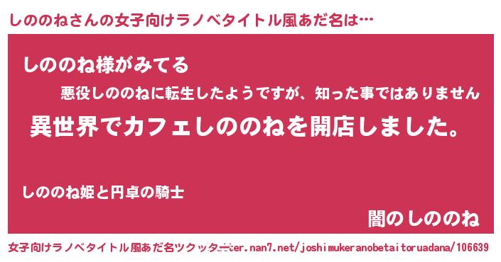 | ヘコむあだ名 | 『しののね(笑)』『しの太郎』『豆乳』 |