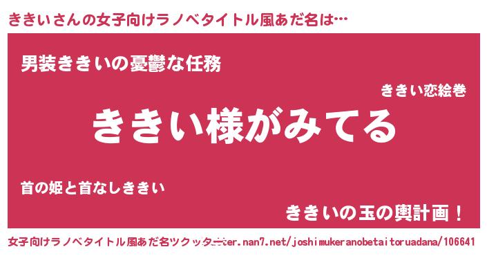 | 男性向けラノベタイトル風あだ名 | 『ききいの嫁は女の子じゃないと思った?』 |