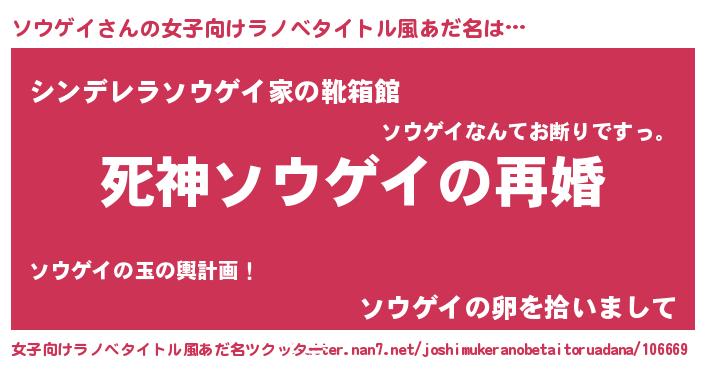 | 男性向けラノベタイトル風あだ名 | 『ノーゲーム・ノーソウゲイ』 |