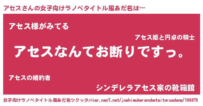| 男性向けラノベタイトル風あだ名 | 『魔法科高校のアセス』『緋弾のアセス』 |