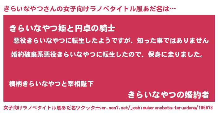 | 胡散臭い通販商品みたいなあだ名 | 『必ず成功するブレスレット…その名も「きらいなやつ」』 |