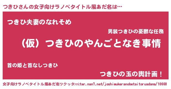 | 男性向けラノベタイトル風あだ名 | 『つきひの憂鬱』『はたらくつきひさま!』 |