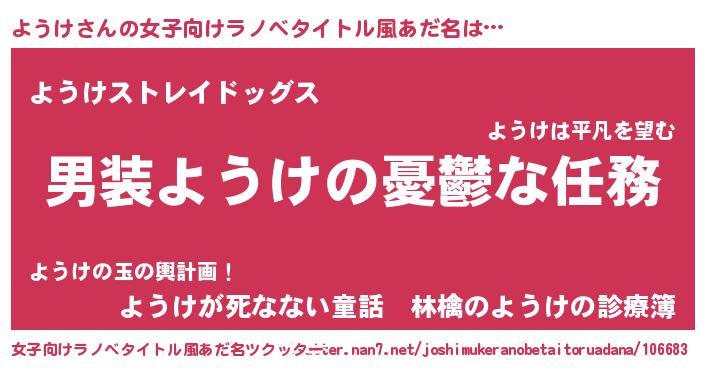 | 男性向けラノベタイトル風あだ名 | 『冴えないようけの育てかた』 |