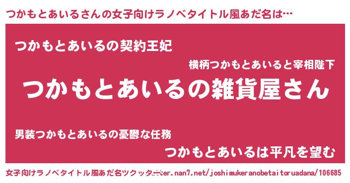 | 男性向けラノベタイトル風あだ名 | 『やはりつかもとあいるの青春ラブコメはまちがっている 』 |
