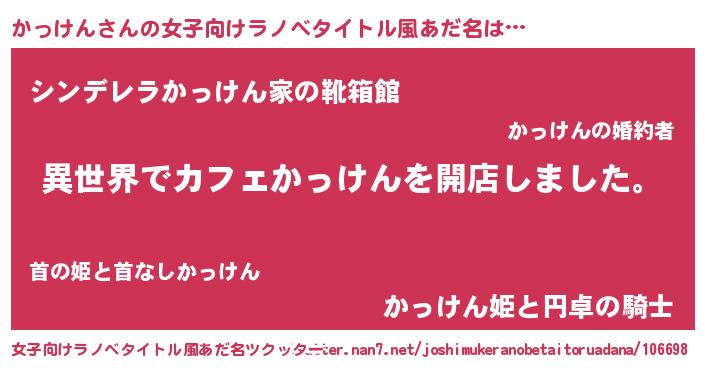 | 男性向けラノベタイトル風あだ名 | 『誰もが恐れるあのかっけんが、ぼくの専属メイドになるようです。』 |