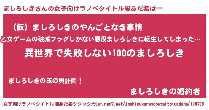 | 男性向けラノベタイトル風あだ名 | 『ましろしきという概念が存在しない退屈な世界 』 |