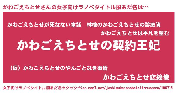 | 男性向けラノベタイトル風あだ名 | 『かわごえちとせという概念が存在しない退屈な世界 』 |