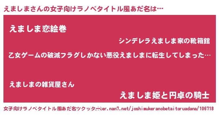| 男性向けラノベタイトル風あだ名 | 『この素晴らしい世界にえましまを!』 |