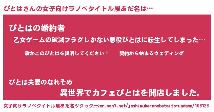 | 男性向けラノベタイトル風あだ名 | 『ピトハアートオンライン』 |