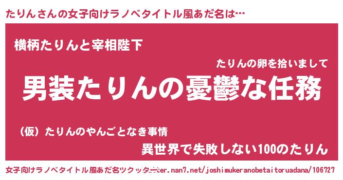 | 男性向けラノベタイトル風あだ名 | 『うちのたりんが世界を掌握している!』 |
