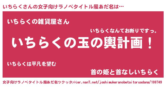 | 男性向けラノベタイトル風あだ名 | 『転生したらいちらくだった件』 |