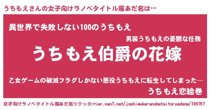 | 意味不明あだ名 | 『うちもえフォーエバー』『自称うちもえ』 |