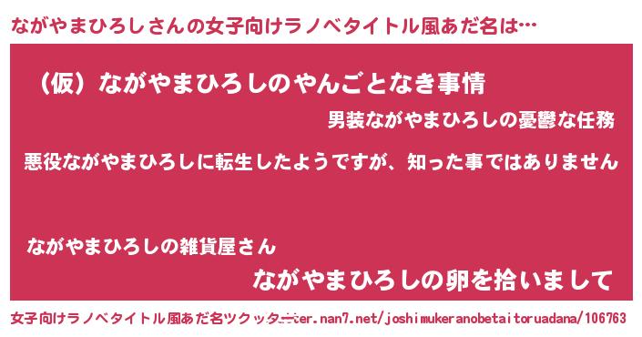 | 男性向けラノベタイトル風あだ名 | 『この素晴らしい世界にながやまひろしを!』 |