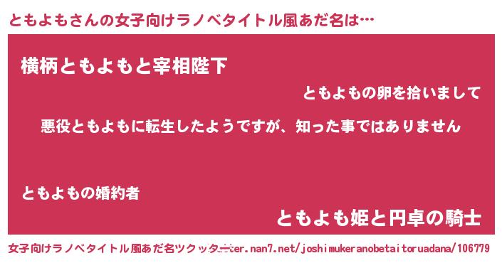 | 胡散臭い通販商品みたいなあだ名 | 『あなたにだけ特別に提供する世界で10本だけ現存している希少なブランデー…その名も「ともよも」』 |