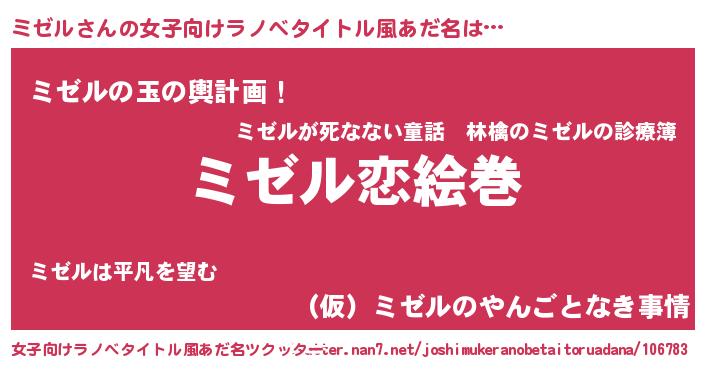 | ヘコむあだ名 | 『ミゼっふぃ~』『ミゼ太郎』『牛乳』 |