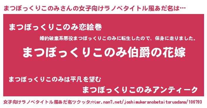 | 意味不明あだ名 | 『まつぼっくりこのみフォーエバー』 |