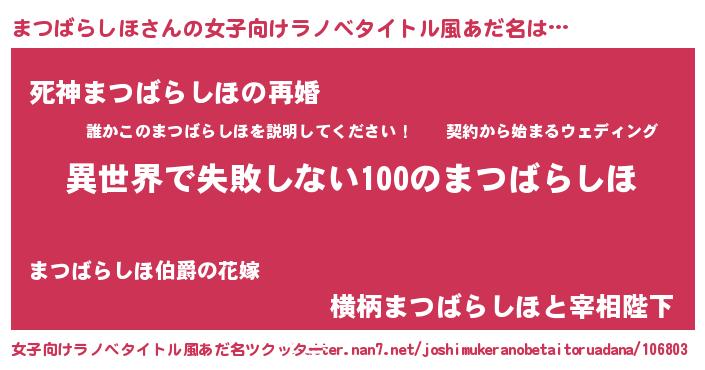 | 男性向けラノベタイトル風あだ名 | 『まつばらしほという概念が存在しない退屈な世界 』 |