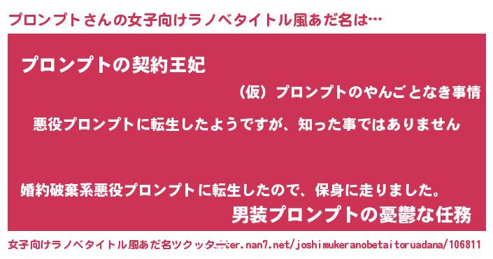 | 男性向けラノベタイトル風あだ名 | 『この素晴らしい世界にプロンプトを!』 |