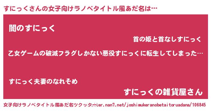 | 男性向けラノベタイトル風あだ名 | 『この素晴らしい世界にすにっくを!』 |