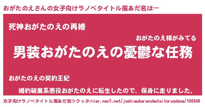 | 男性向けラノベタイトル風あだ名 | 『冴えないおがたのえの育てかた』 |