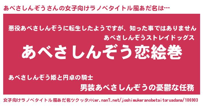 | 意味不明あだ名 | 『眠気覚ましガムあべさしんぞう味』 |