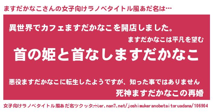 | 男性向けラノベタイトル風あだ名 | 『はたらくますだかなこさま!』 |