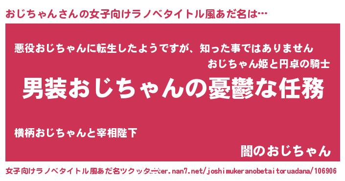 | 胡散臭い通販商品みたいなあだ名 | 『あなたにだけ特別に提供する世界で10本だけ現存している希少なブランデー…その名も「おじちゃん」』 |
