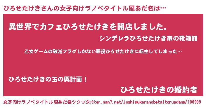 | 男性向けラノベタイトル風あだ名 | 『魔弾の王とひろせたけき』 |