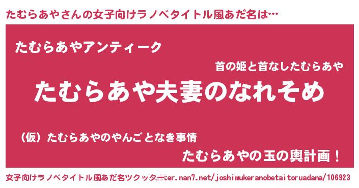 | ヒーロー風カッコイイあだ名 | 『正義の使者たむらあや』『仮面タムダー』 |