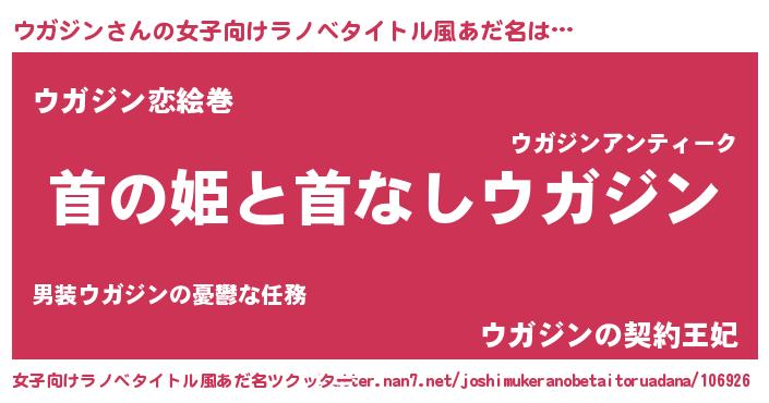 | 男性向けラノベタイトル風あだ名 | 『はたらくウガジンさま!』 |
