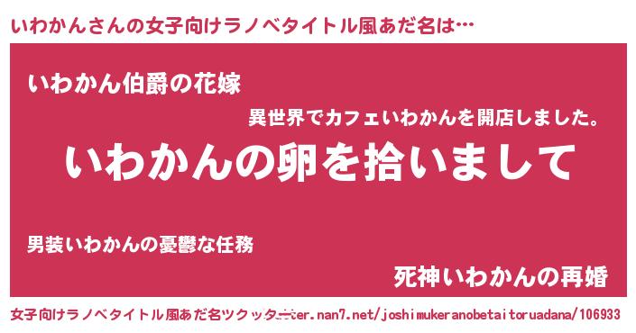 | ポケモン風あだ名 | 『ヒイワカン』『イワカダネ』 |