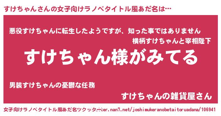 | 男性向けラノベタイトル風あだ名 | 『すけちゃんの嫁は女の子じゃないと思った?』 |