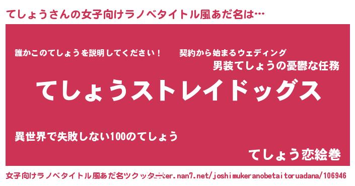 | 男性向けラノベタイトル風あだ名 | 『Re:てしょうから始める異世界生活』 |