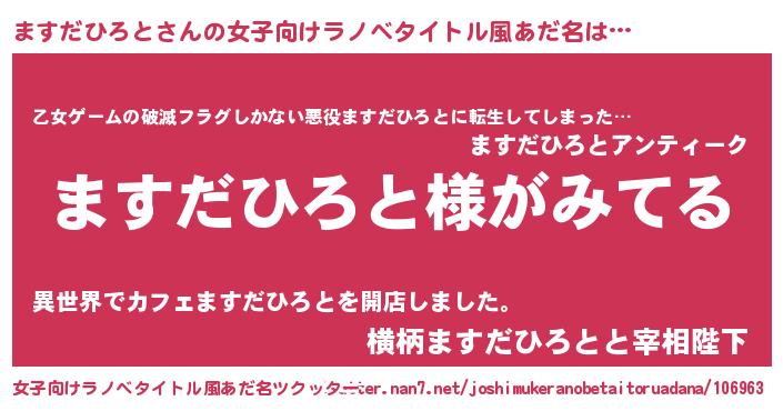 | 男性向けラノベタイトル風あだ名 | 『ますだひろとの嫁は女の子じゃないと思った?』 |