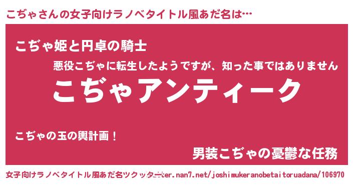 | 胡散臭い通販商品みたいなあだ名 | 『テレビで話題の高麗人参…その名も「こぢゃ」』 |