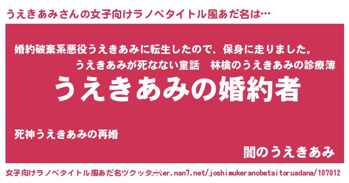 | ファンタジー風あだ名 | 『エターナルウエキアミー』『ゼウエトゥ』 |