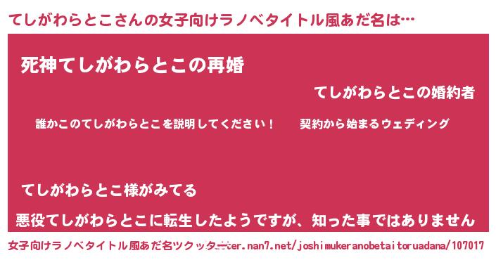 | 男性向けラノベタイトル風あだ名 | 『テシガワラトコアートオンライン』 |