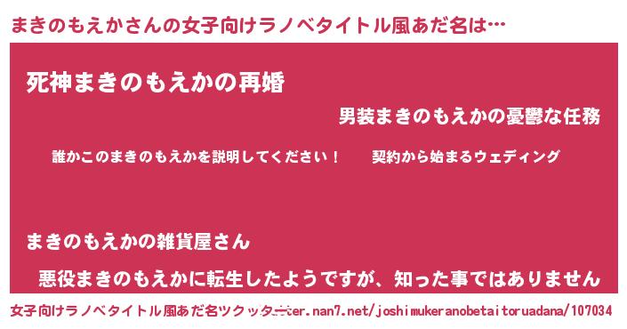 | 男性向けラノベタイトル風あだ名 | 『マキノモエカアートオンライン』 |