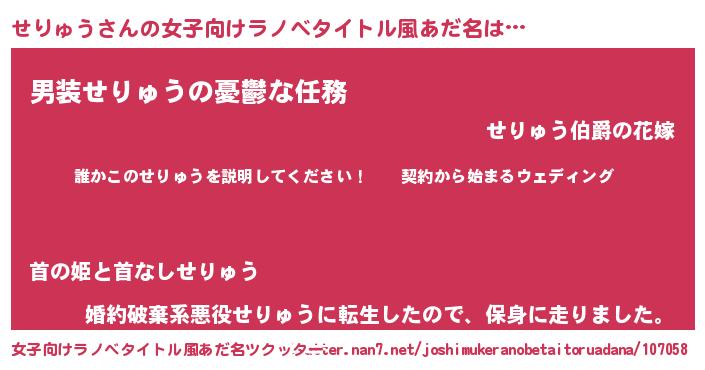 | 男性向けラノベタイトル風あだ名 | 『セリュウアートオンライン』 |